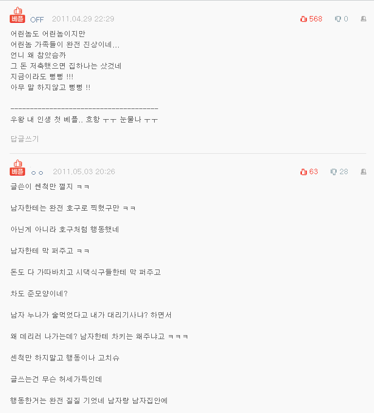 아가들의 의견을 보고 내가 정말 어린놈과의 인연을 싹뚝 잘라야 한다고 마음먹었지.