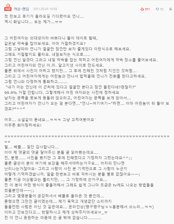 이 언니 아가들의 댓글을 하나 하나 읽어 보았지.