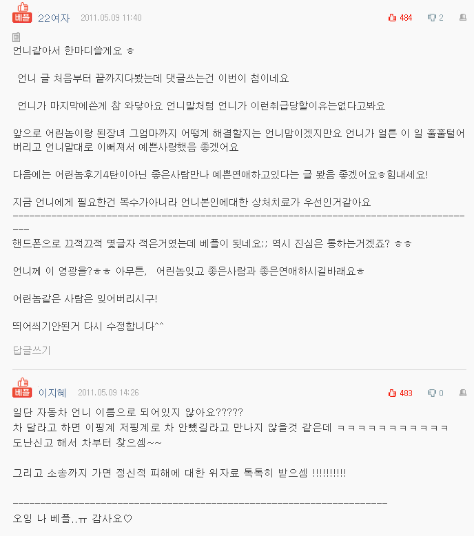 아가들의 댓글을 읽고 또 읽어 보았지.