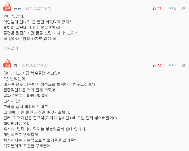 김여사는 분명 어린놈 어머니가 했던 말을 아무 말도 못하고 그대로 다 듣고 있었을테지.