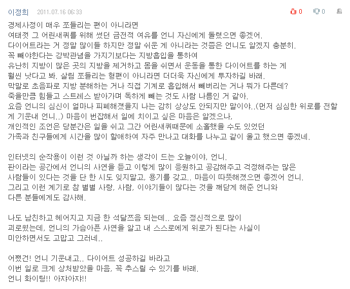 요즘 이 언니의 상황을 고려 했을 때, 뭔가 강경한 자세는 좋을 게 없을 것 같다는