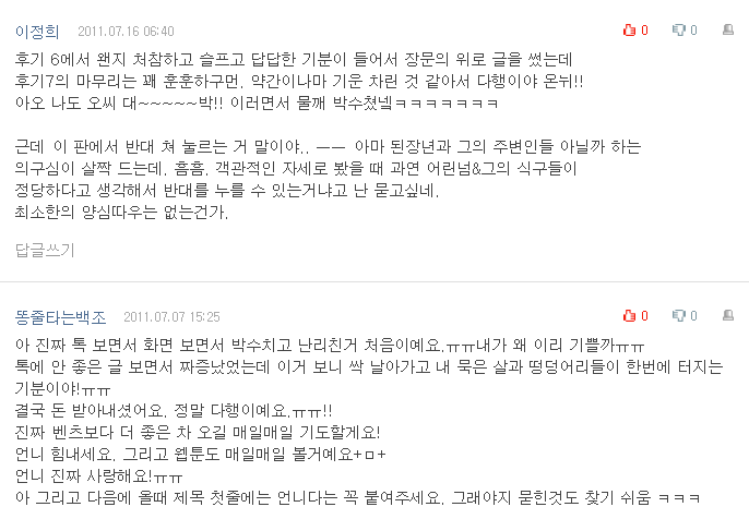 아직도 종종 쪽지와 메일로 많은 조언들이 와서 "아 정말 네티즌의 힘이 대단하구나" 라고 생각중이야.