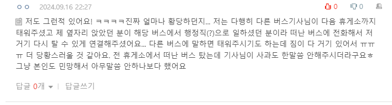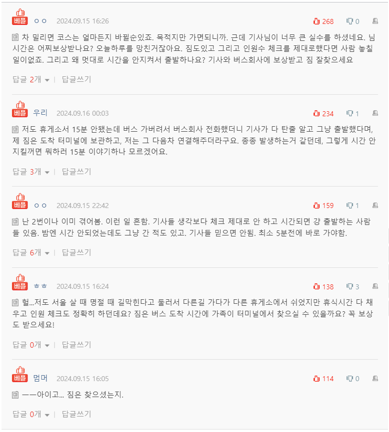 부모님은 버스가 이렇게 노선을 함부로 변경한 것도 문제라면 문제라고 말씀하시고, 15분 휴게시간 다 안돼서 출발한 것도, 인원체크를 제대로 안 한 것도 문제가 크다며 버스회사 측에 어떻게 안전히 도착할 수 있을지, 짐을 문제없이 수령할 수 있을지 잘 이야기하고 상의해보라고 말씀하십니다.