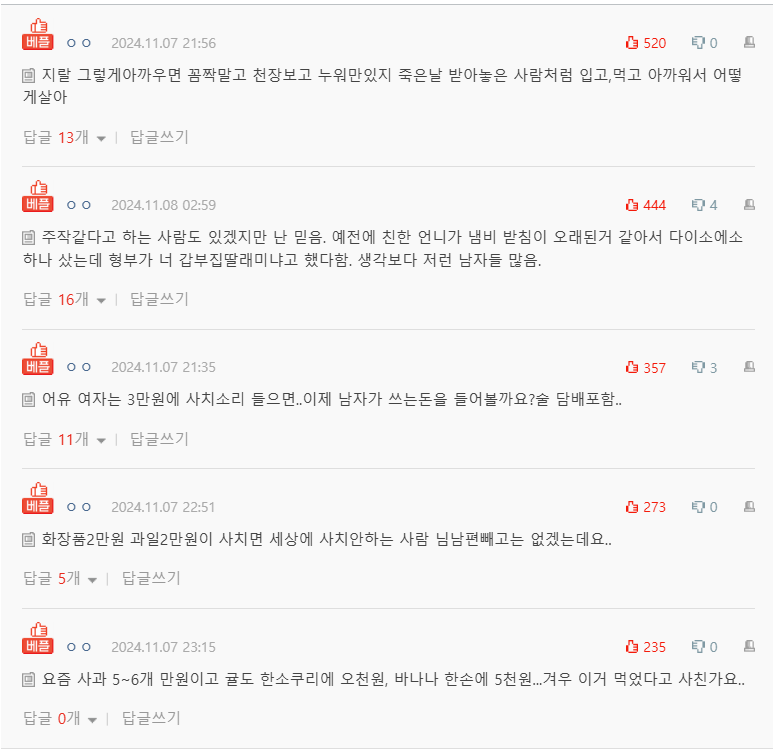 한달에 3만원 쓰고 사치 심하단 소리 들어서 어이없네요