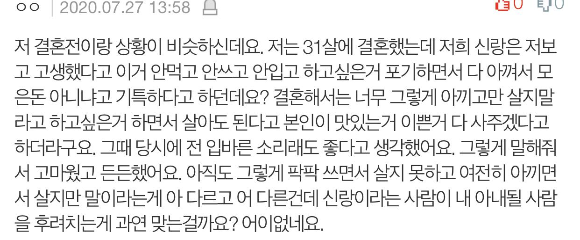 그래서 객관적으로 얘기 듣고싶어서 이곳에 글 올려요