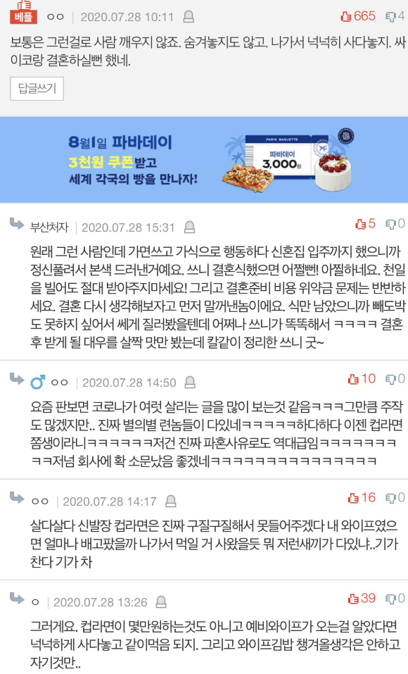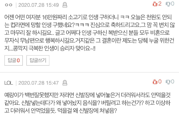 정상이면 누가 컵라면으로 파혼생각을 합니까