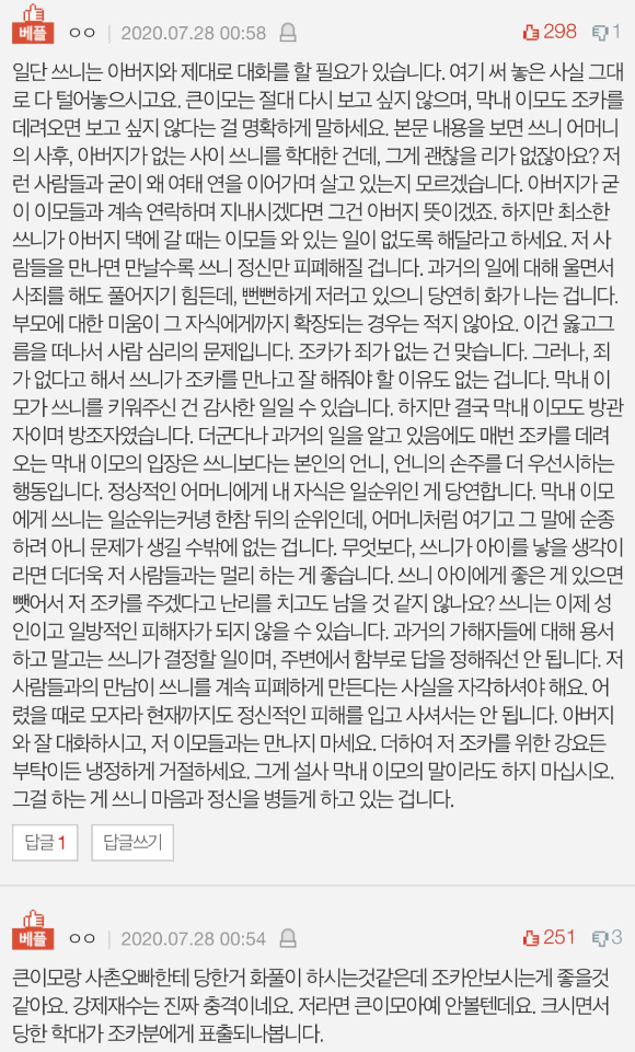 제가 당한 서러움과 애를 보면 화가 난다고 막내이모에게 지속적으로 말씀 드렸지만...