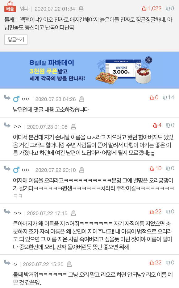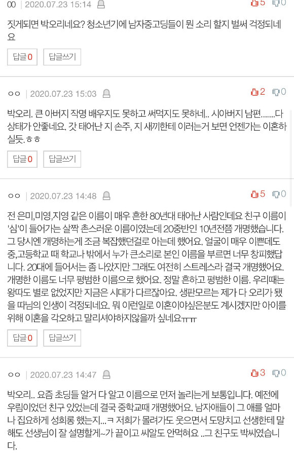 아니 이름 그게 뭐가 그렇게 중요하냐고 그럼 큰아버지가 지어주셨는데 그 성의를 무시하냐는거예요