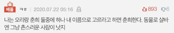 자기는 오리라는 이름도 특이하고 나쁘지않은거같대요