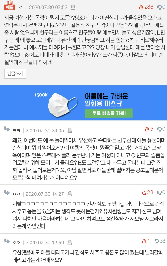 C가 아이 잃고 힘들어하니 이번엔 그냥 우리끼리 가자더라구요.