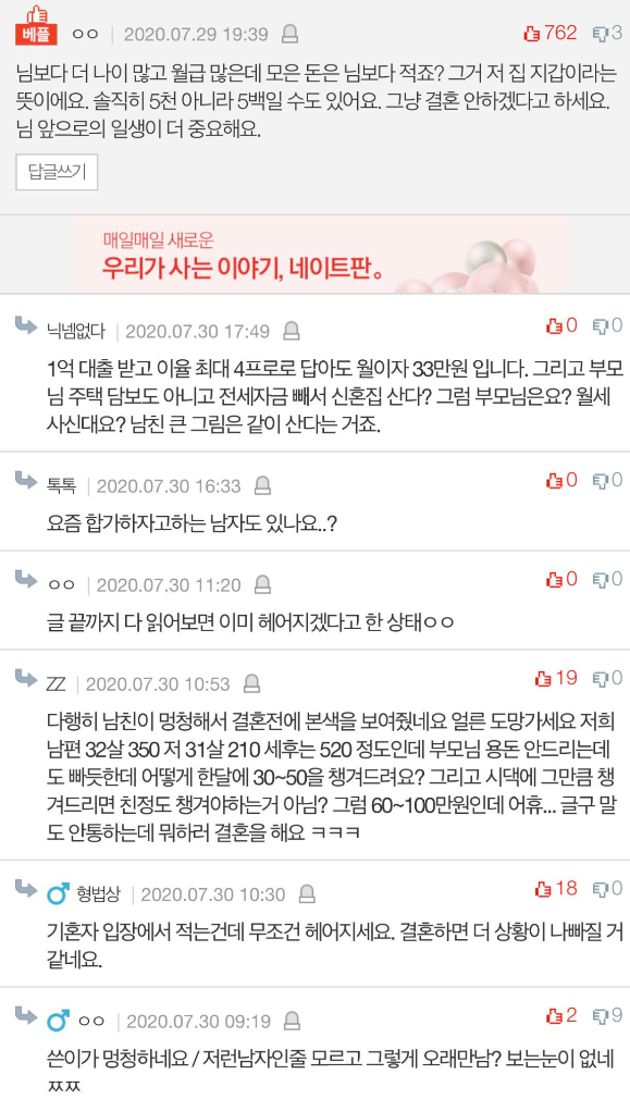 남친:대출이자가 얼만지 알긴 하냐?빚을 그렇게 쉽게 보면 어떡해?