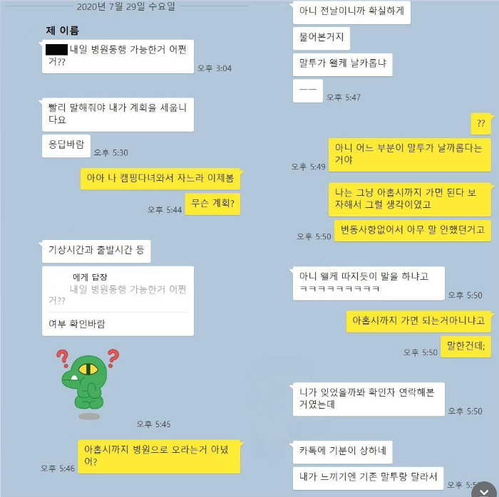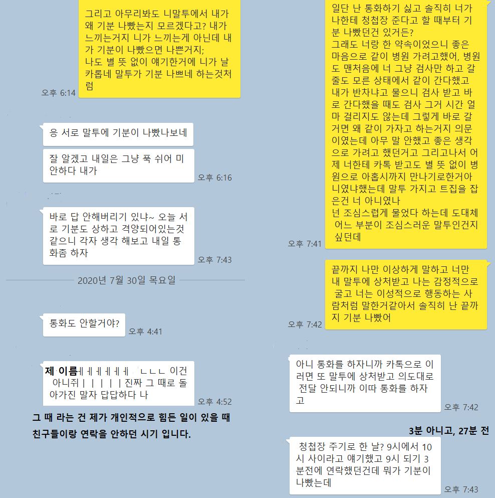 진료를 함께 가기로 한 전 날 오후3시에 친구에게 연락이 왔고, 그날 카톡은 내용이 좀 길어 카톡 첨부하도록 하겠습니다.