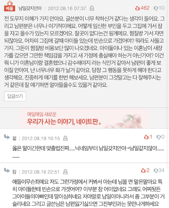 네이트판을 안 후 종종 판을 들여다보며 세상에 별의별 사람이 많다는 것을 배웠습니다.