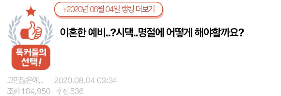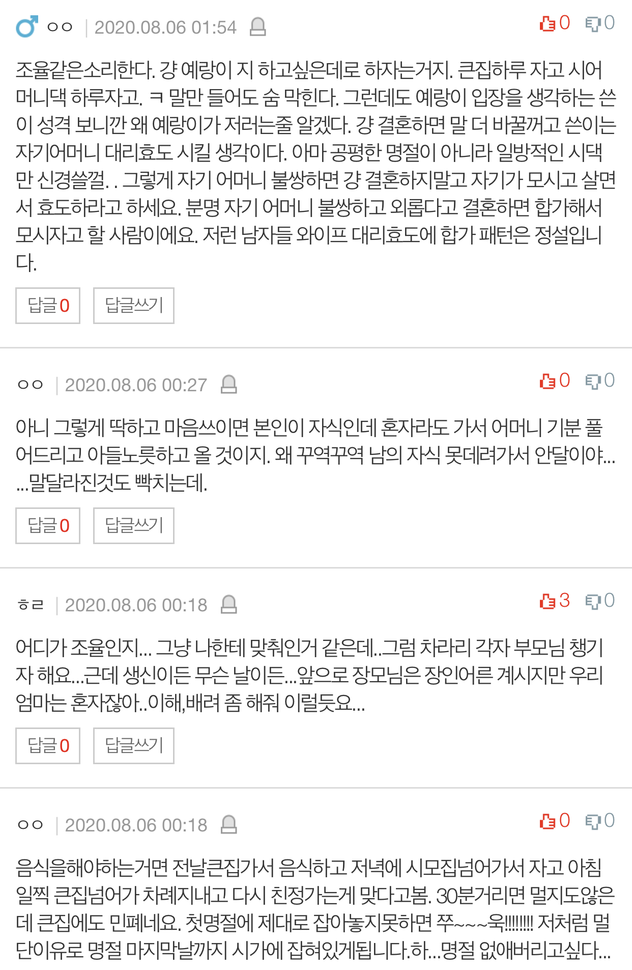 그런디 예랑이 무슨말을 하고싶어하는지도 알고.. 거의 20년간을 명절에 외롭게 보내셨을테니 생각도 많으셨겠죠.. 그렇지만 이 일로 예랑과 앞으로 말 싸움 하고 기분상하고 싶지 않아서 최대한 확실하게 기준을 정하려고하는데 선배님들의 조언이 듣고싶습니다!!