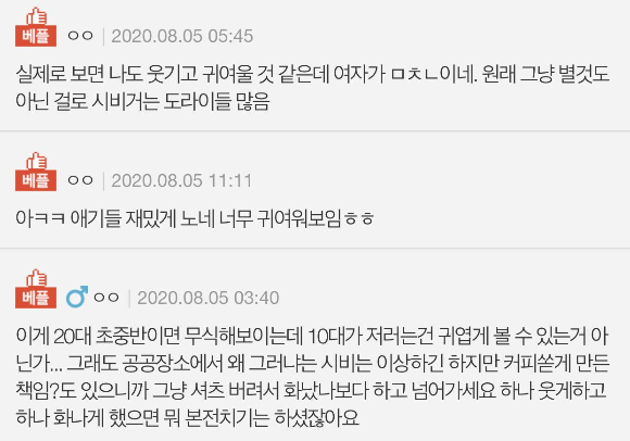 저랑 친구 당황해서 걍 네? 네? 하고 있는데 남성분이 여성분 데리고 걍 나가자고 음료 들고 가시면서 저희보고 죄송하다고 하셨어요