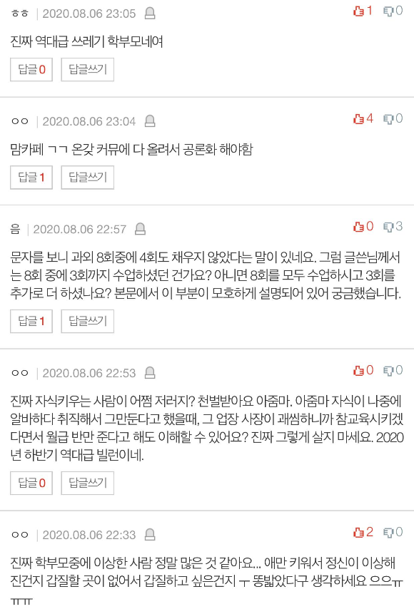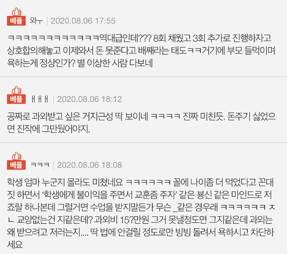 ➰이전 이야기➰ [네이트판 결시친] 1편)역대급 과외 썰 풉니다. 이 어머니의 비하를 견디지 못하겠네요.(노동착취 안녕하세요. 먼저 저는 해당 과외를 7월 초에 시작했고, 인턴이 다 떨어진 후라