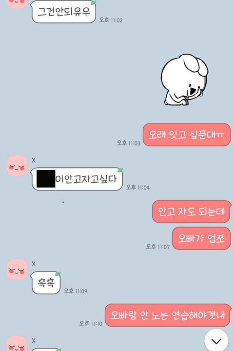 사랑한다. 보고싶다. 안고자고 싶다 등. 다음주 주말에도 저를 보러 온다고 약속했었고