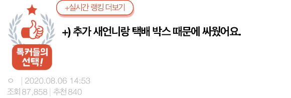 오빠는 부모님이랑 따로 살구요. 새언니가 부모님이랑 같이 먹으려고 홈쇼핑에서 양념갈비 사온거 부모님 집으로 배송 시킨거래요. 그리고 싸가지없게 오셨어요? 안하고 오셨어요~! 했습니다. 물론 집에 오자마자 씻으러 들어가서 택배박스 절대 안열어봤구요. 제것 아니면 건들이지도 않아요.