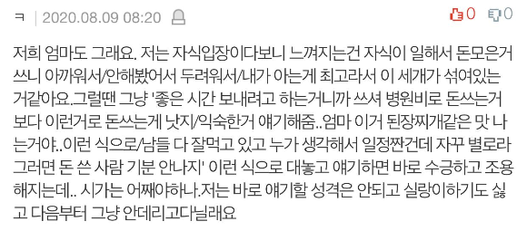 우리 생각해서 돈 많이 써줘서 고맙다는 표현을 저렇게 서툴게 하는건지