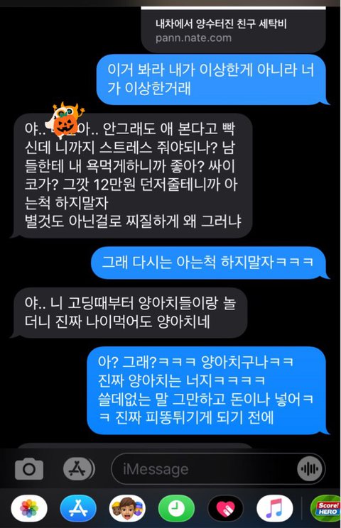 저에겐 설마 돈 다받을려고? 너 되게 이상하다