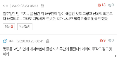 어찌 됐든... 글솜씨 없는 제 글 읽어주시고 댓글로 조언 남겨주셔서 정말 감사했습니다.