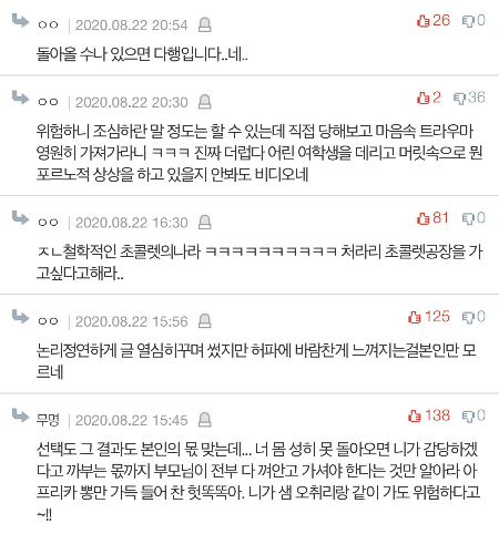 따끔한 충고도 있었고, 어이없는 내용의 댓글도 있었고, 정말 극소수지만 제 결정을 존중해주시는 분들도 계셨습니다.
