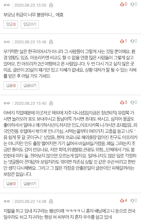 ➰이전 이야기➰ [네이트판 결시친] 1편)(아버지입장)딸이 아프리카를 가겠답니다 안녕하세요, 스무살 딸을 둔 애 아빠입니다. 좋은 답변을 받기에 여기만큼 마땅한 공간이 없어서 방탈한다는 ��