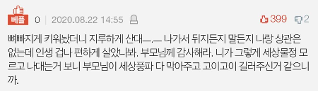 첫 번째로, 저는 부모님께 손을 벌리고 싶다는 생각이 단 하나도 없습니다.