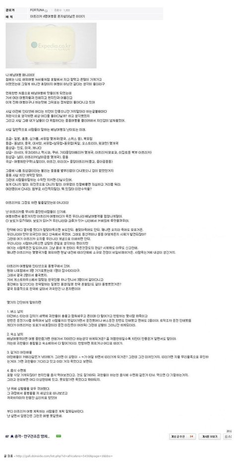 ➰이전 이야기➰ [네이트판 엽기&호러] 1편)공포스런 아프리카 여행 후기들 [디시인의 아프리카 여행기] 1. ⬇️⬇️모바일 배려⬇⬇️ 갤로거: 킴KIM 제목: [아프리카 48일 여행] 이후02-성훈이형