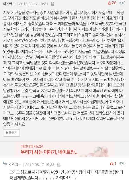[네이트판 엽기&호러] 2편)공포스런 아프리카 여행 후기들