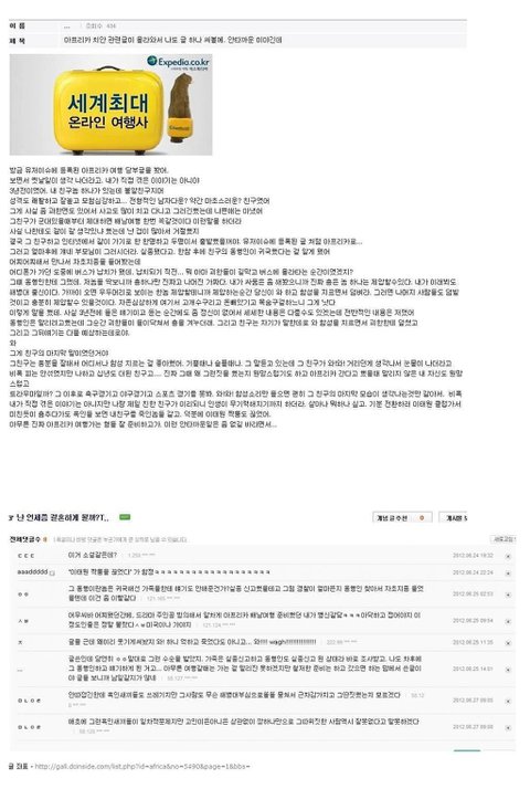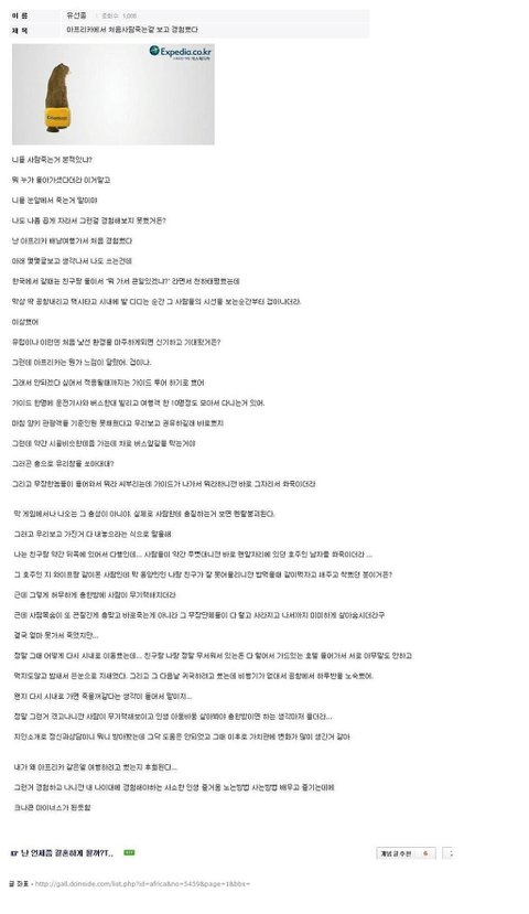 방금 유저이슈에 등록된 아프리카 여행 당부글을 봤어.