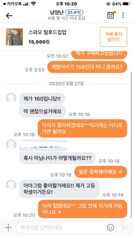 당근마켓에서 스파이더 반팔티 판매글을 보고 구매하겠다는 판매하시는 분께 연락을 드림. 그리고 바로 입금.