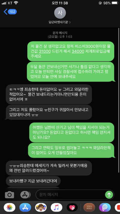 1. 당근마켓 택배거래 물품 계속 안보냄 내 연락만 씹음