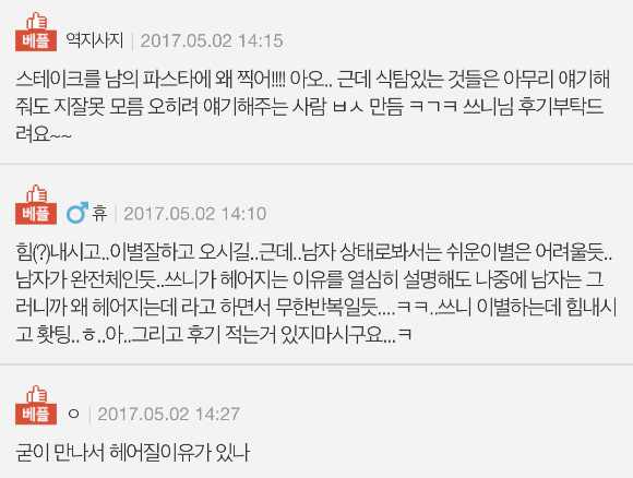 그리고 베플들도 하나하나 읽어보고 남친이 많이처먹으면 메뉴를 더시켜라, 뷔페를 가라
