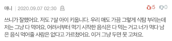 저 : ㅇㅇ 아~ 버린다고 해결될일이 아닌데? 니가 먹겠다며 근데 왜 안먹었어? 처음부터 욕심을 내지말던가 그럼 오빠들하고 언니가 먹었잖니