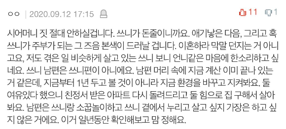 이번기회에 남편에 대해 다시 생각해 보게 됐고, 아직 젊은 만큼 더 현명한 선택 하고싶네요.