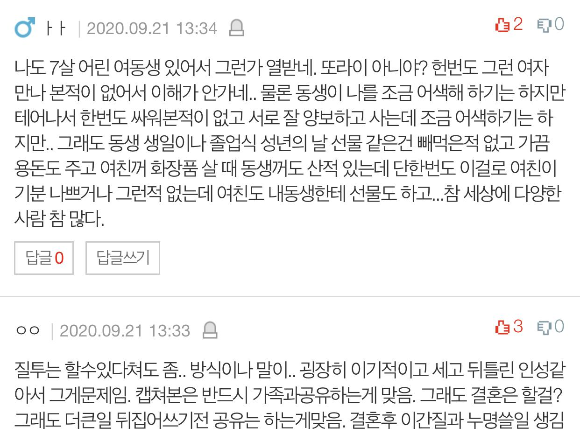 어느 남매가 그 정도로 챙기냐고 징그럽대요.