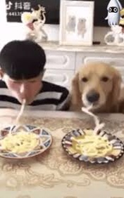 한 조각 먹고 있을 때 정말 남은 거 다 쓸어넣고 지 스파게티 먹기 시작합니다.
