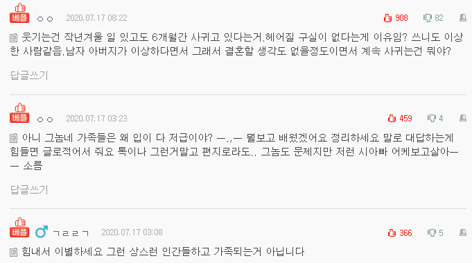 글 쓰며 예상했지만 댓글에 제 욕이 많네요..